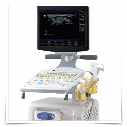 HITACHI Aloka F37彩色超音波,配備 2-6 MHz 弧形陣列探頭,具彩色Doppler功能,供生理及腎臟超音波檢查使用。 -