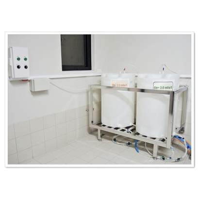 由中央自動供液系統 (A central system) 提供濃度穩定無菌透析液,避免人工配置產生污染。